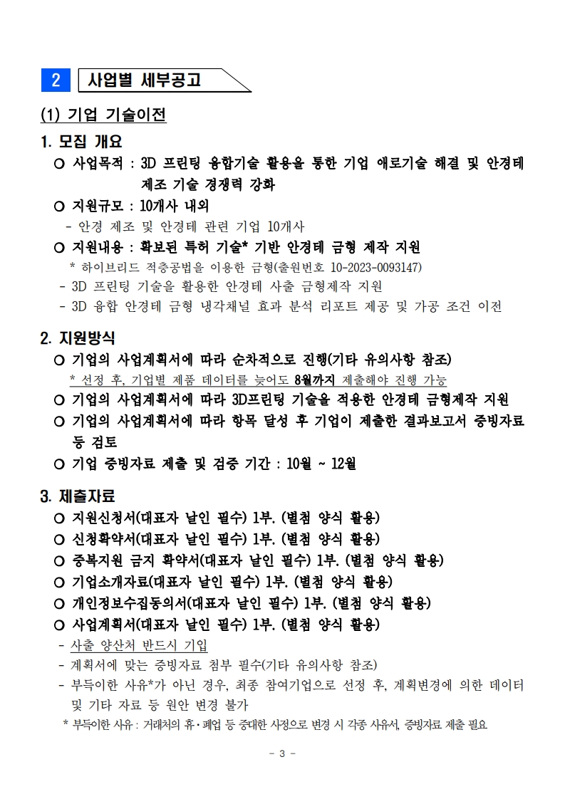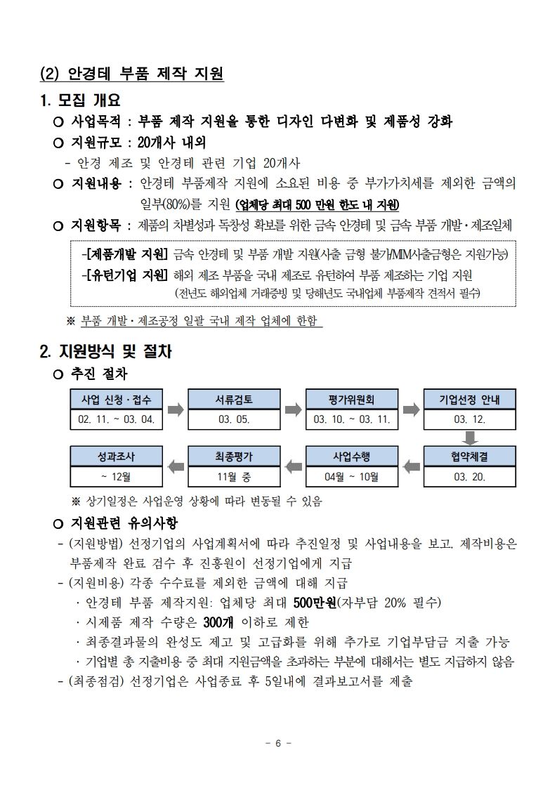 2026년 3D융합안경테 제조기반 구축 사업 참여기업 모집공고