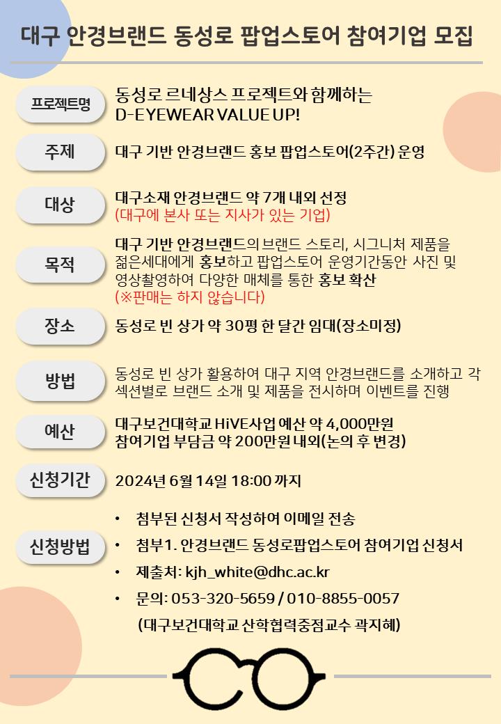 [고등직업교육거점지구(HiVE)] 대구안경브랜드 팝업스토어 참여기업 모집