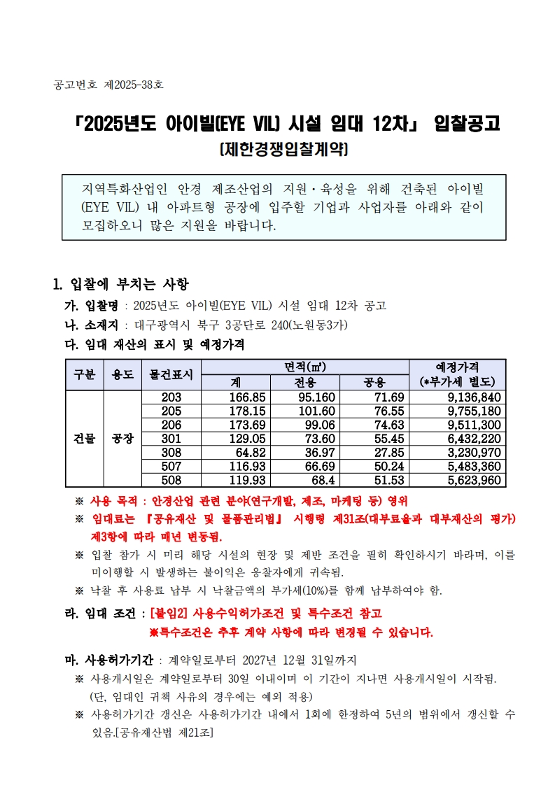 [입찰공고] 2025년도 아이빌 시설 임대 12차 공고