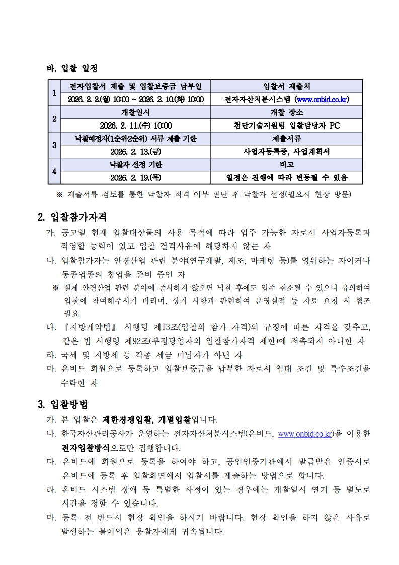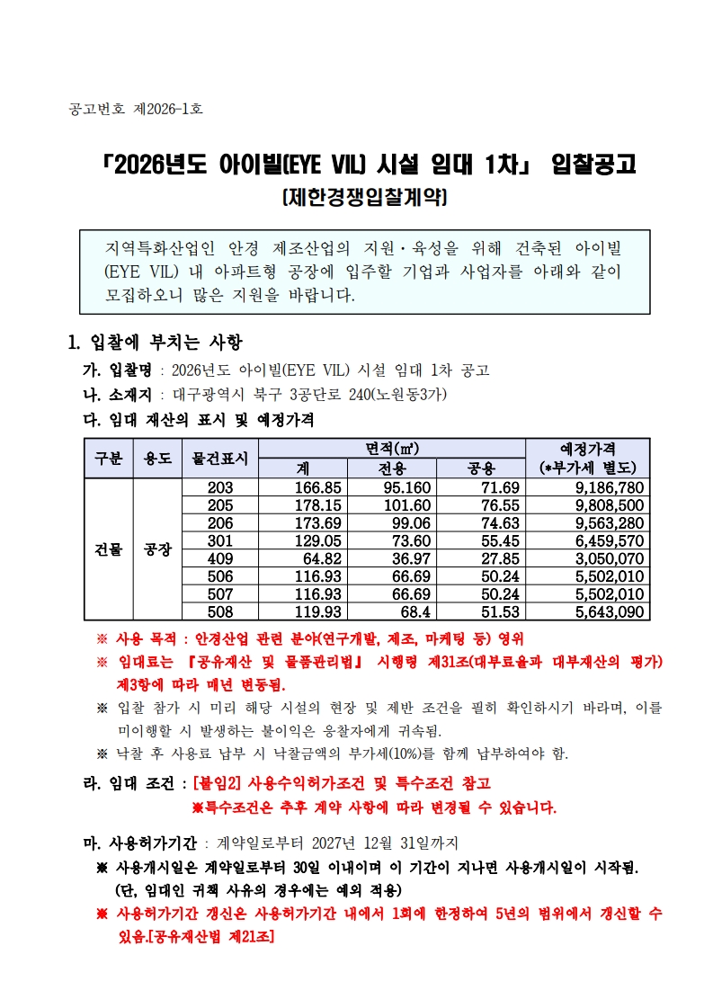 [입찰공고] 2026년도 아이빌 시설 임대 1차 공고